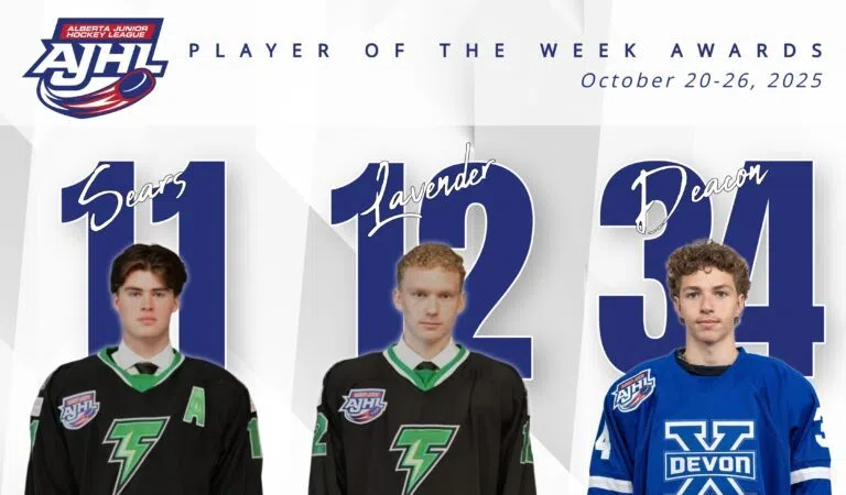 Two Drayton Valley Thunder and one Devon Xtreme players make up this week's AJHL weekly award winners for Oct. 20-26. Ja...
